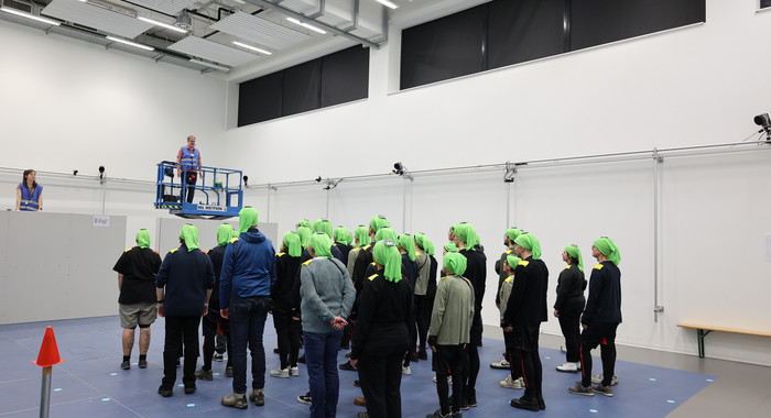 Unter der Decke montierte Kameras erfassen die Laufwege jeder einzelnen Person. Einige Probandinnen und Probanden sind zusätzlich mit 3D-Bewegungssensoren sowie Sensoren zur Messung der Herzfrequenz ausgestattet und liefern den Forschenden weitere, detaillierte Einblicke in das Geschehen. Ergänzend fließen individuelle Faktoren wie Körpergröße oder Fitness in die Auswertung ein, um ein möglichst umfassendes Bild der entstehenden Dynamik zu gewinnen.