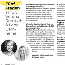 Römisch: Mehr als hundert Veranstalter aus allen Disziplinen, die großen Verbände sowie der Deutsche Olympische Sportbund mit seiner sportpolitischen Expertise waren aktiv in den Entwicklungsprozess eingebunden. Die Angebote wurden aus dem Sport für den Sport entwickelt. Viele Verbände haben ihre Bereitschaft erklärt, im zukünftigen Netzwerk mitzuwirken, um die Tools weiter anzupassen und zu optimieren. Nachhaltigkeit ist ein fortlaufender Prozess.