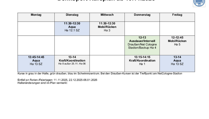 für das Wintersemester 2025/26 haben wir einen neuen Kursplan, der ab dem 10.11.2025 gilt.