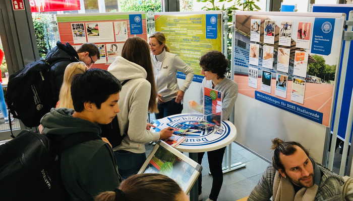 Zusätzlich können Sie sich an den jeweiligen Ständen über die konsekutiven Masterstudiengänge der Deutschen Sporthochschule Köln informieren.