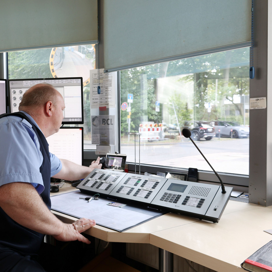 Das Team der Pforte arbeitet in zwei Schichten: von 6 bis 18 Uhr und von 18 bis 6 Uhr. Abends bzw. nachts gibt es eine Nachstreife, die den kompletten Campus abläuft und überprüft, ob alles in Ordnung ist. Ein weiterer Kollege, Sami Yalcin, betreut zusätzlich das Gästehaus am Bundesleistungszentrum Hockey und Judo. Das Team hat in den letzten Jahren immer mehr Tätigkeiten hinzugekommen, viel Technik ist in der Pförtnerloge eingezogen. Auf den Monitoren sehen die Mitarbeiter Aufnahmen der Videokameras, die an einigen Gebäudeeingängen angebracht sind. Meldet die Gebäudeleittechnik der Uni eine Störung, zum Beispiel einen Stromausfall oder einen Brand, informieren die Mitarbeiter den Bereitschaftsdienst. Des Weiteren empfangen und informieren die Pförtner Gäste, händigen Schlüssel für reservierte Hallen oder Räume aus, überwachen die Zufahrt zum Parkdeck. Auch Dopingproben, die nachts für das Institut für Biochemie angeliefert werden, nimmt die Pforte in Empfang und lagert diese übergangsweise in einem extra Kühlschrank. Ralfs Tipp an die Erstsemesterstudierenden: „Wenn Ihr Fragen habt, traut euch, uns anzusprechen, wir beißen nicht!“