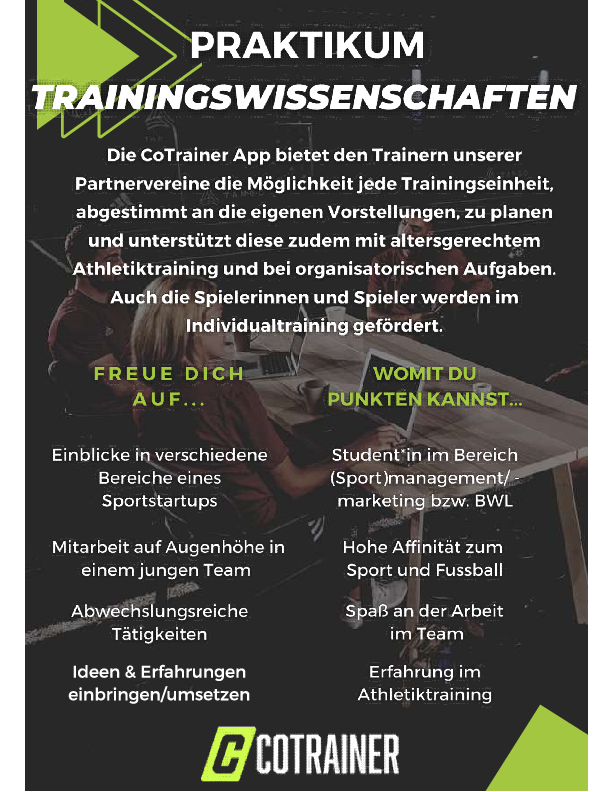 Sende deine Bewerbung (kurzes Anschreiben + Lebenslauf) per E-Mail an max@cotrainer.com
