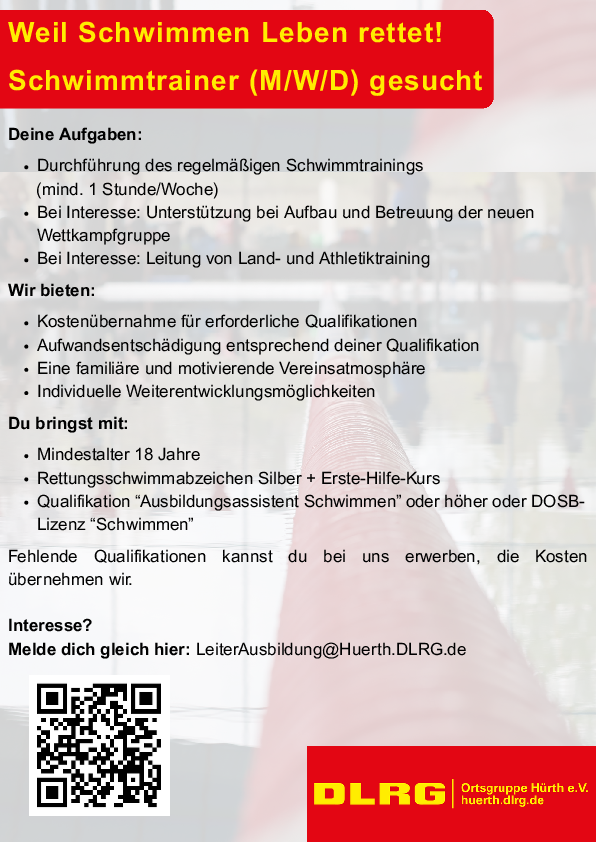 Melde Dich gleich hier: Leiterausbildung@huerth.dlrg.de