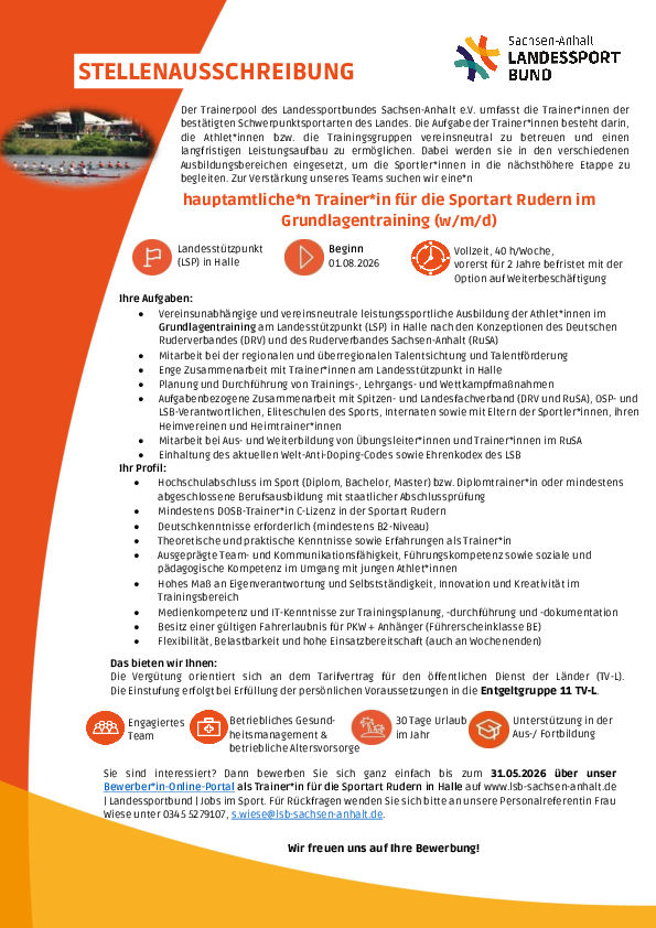 •Mindestens DOSB-Trainer*in C-Lizenz in der Sportart Rudern