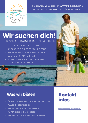 •Die Möglichkeit, aktiv den Aufbau einer modernen Schwimmschule für Erwachsene mitzugestalten