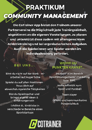 Du wirst Teil unseres Community-Teams und hilfst mit, CoTrainer in Fußballvereinen deutschlandweit zu etablieren.