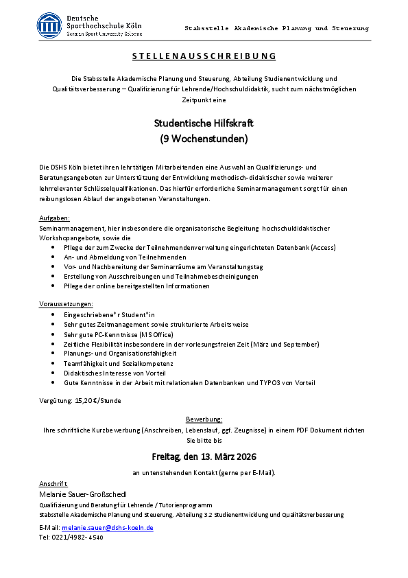 DSHS - studentische Hilfskraft Veranstaltungsmanagement