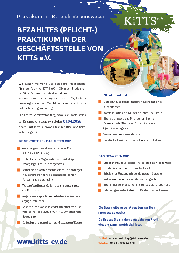 Bezahltes (Pflicht-)Praktikum in der Geschäftsstelle von KiTTS e.V.