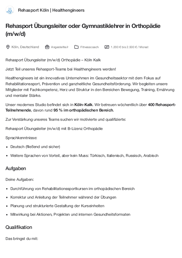 | Anbieter | Rehasport Köln | Healthengineers |