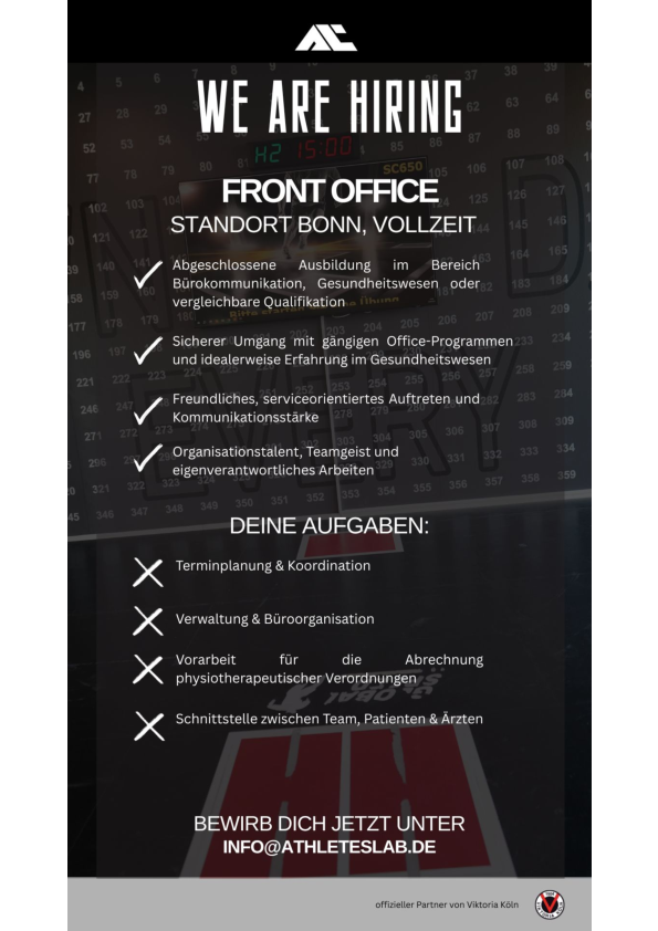 Wir suchen mit dieser Ausschreibung nach einer Qualifizierten Person, die bei uns in unserem neuen Standort in Bonn das Front Office besetzt.