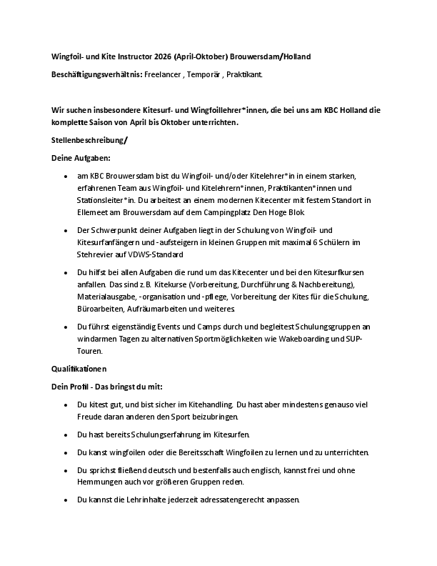 Weitere Jobangebote von KBC - Kiteboarding Club