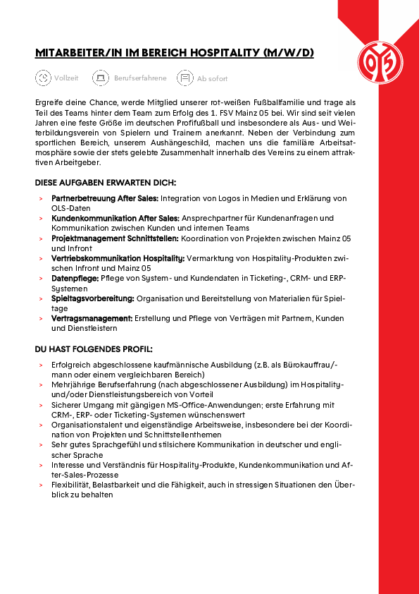 Weitere Jobangebote von 1. FSV Mainz 05 e.V.