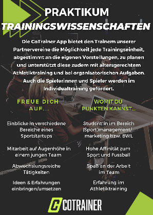 Mit CoTrainer unterstützen wir Fussballvereine im Amateur- und Breitensport bei der professionellen Planung und Durchführung von Trainingseinheiten – individuell, altersgerecht und digital. Unsere Cotrainer-App bietet Tools zur Trainingsplanung, für Athletik- und Individualtraining sowie zur Organisation des Vereinsalltags. Gemeinsam wollen wir den Amateur- und Nachwuchsfußball auf das nächste Level bringen.
