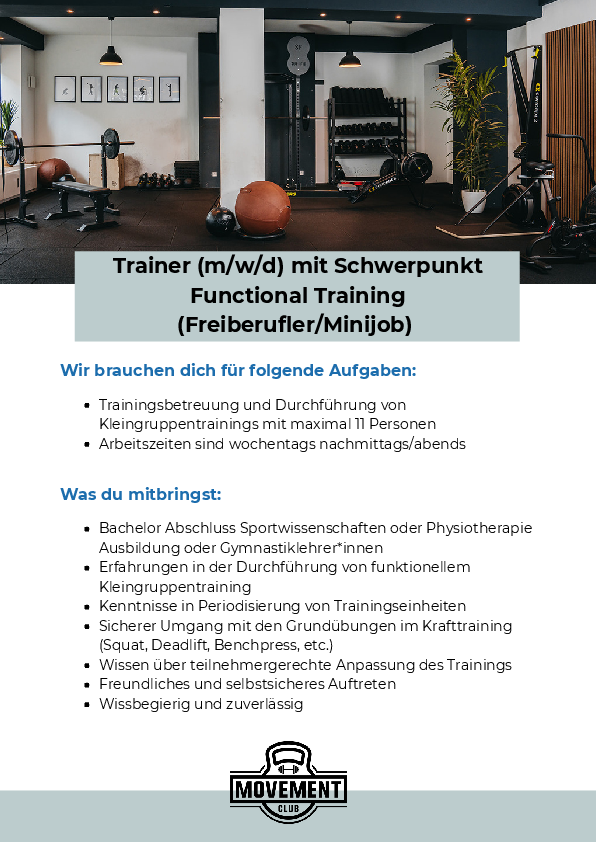 Trainer (m/w/d) mit Schwerpunkt Functional Training (Freiberufler/Minijob)