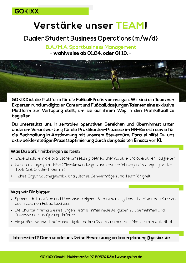 Dualer Student Business Operations (m/w/d) - B.A. / M.A. Sportbusiness Management