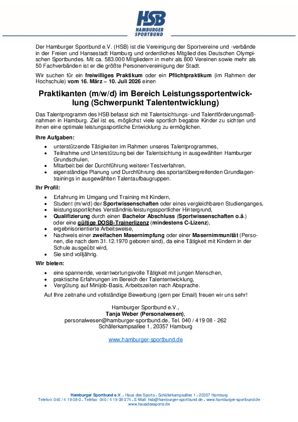 personalwesen@hamburger-sportbund.de, Tel. +49 40 / 419 08 - 262