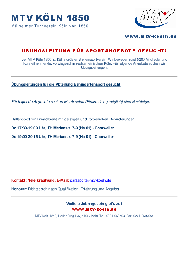Kontakt: Nele Krautwald, E-Mail: parasport@mtv-koeln.de