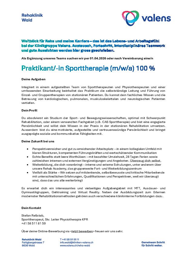 Praktikant/-in Sporttherapie (m/w/a) 100%