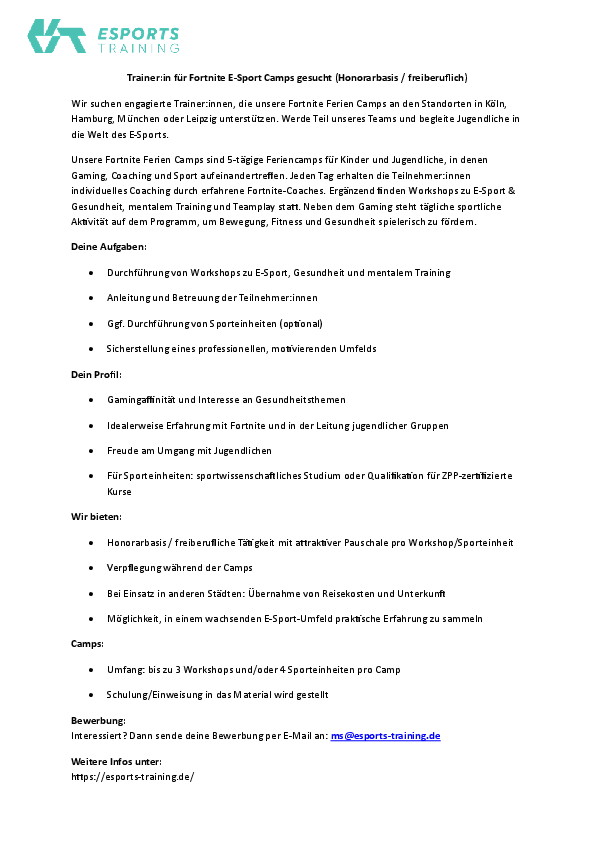 Interessiert? Dann sende deine Bewerbung per E-Mail an: ms@esports-training.de