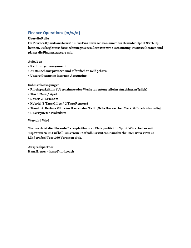 Finance Operations & Revenue Control Assistant - Turf Coach GmBH