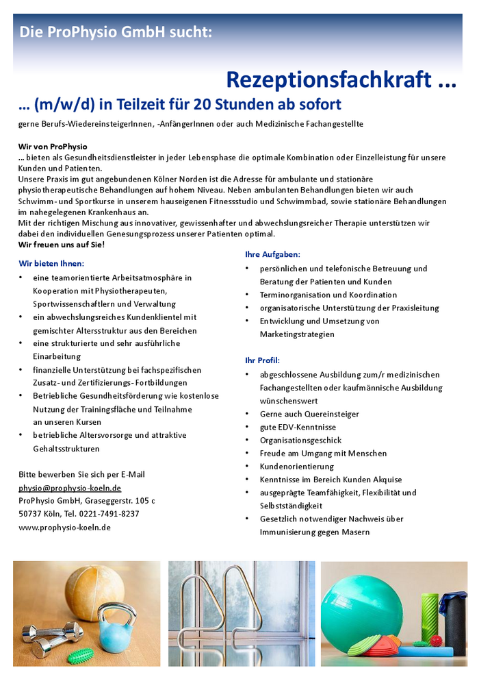 ProPhysio GmbH, Graseggerstr. 105 c50737 Köln, Tel. +49 221 7491-8237