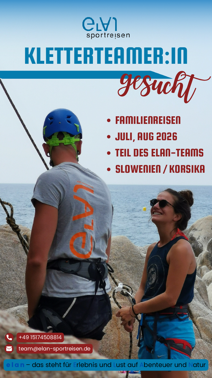 Als Kletterguide bei elan sportreisen suchen wir engagierte Teamer:innen, die unsere Reisen aktiv mitgestalten. Bei uns stehen sichere Klettererlebnisse, Freude an Bewegung und echtes Gemeinschaftsgefühl im Mittelpunkt. Einsätze sind flexibel ab 10 Tagen bis zu 2 Monaten (auch als Praktikum) möglich.