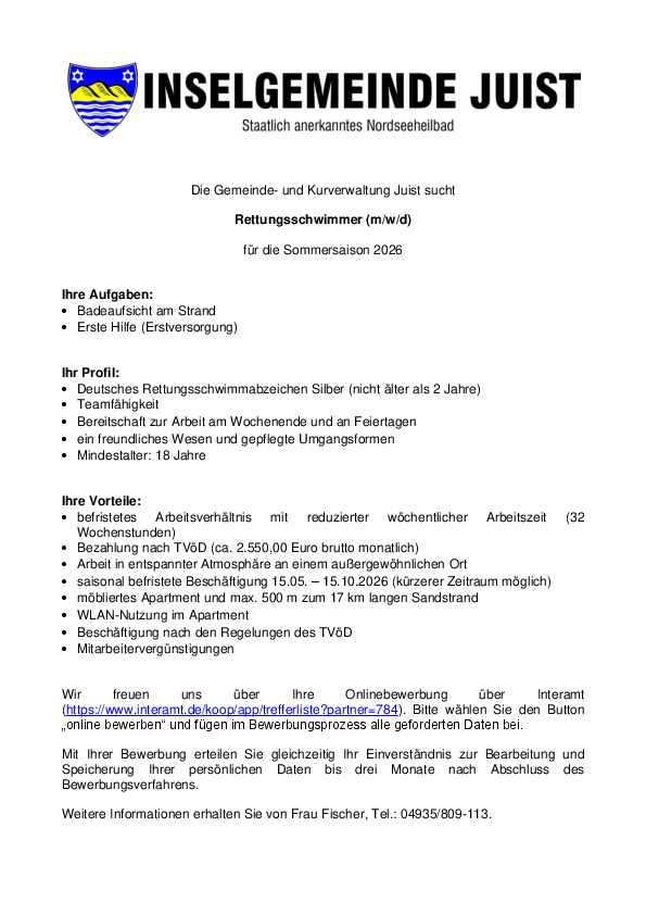 Die Gemeinde- und Kurverwaltung Juist sucht