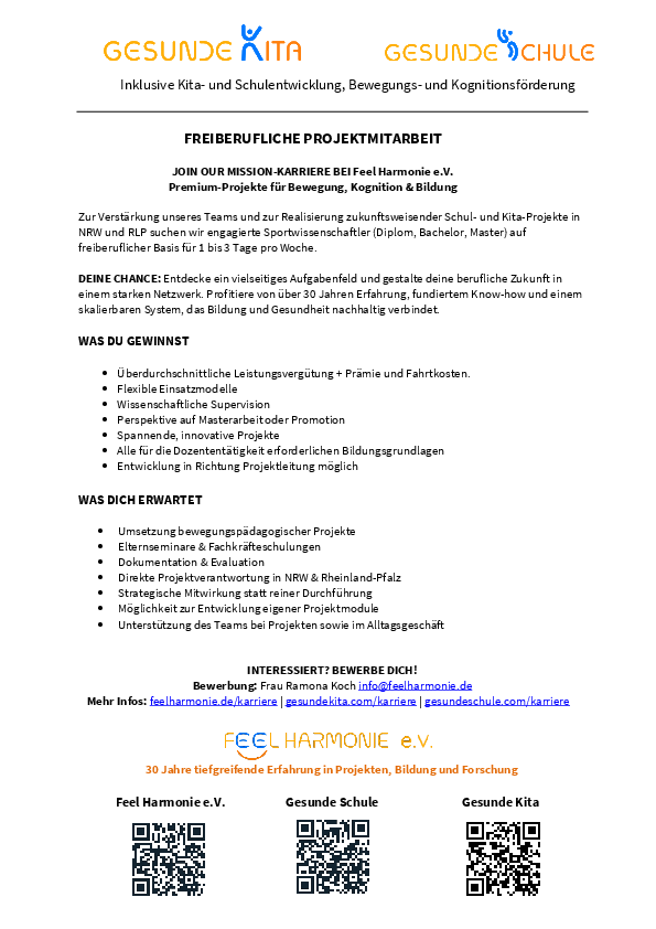 STELLENAUSSCHREIBUNG FEEL HARMONIE e.V.-FREIBERUFLICHER BASIS