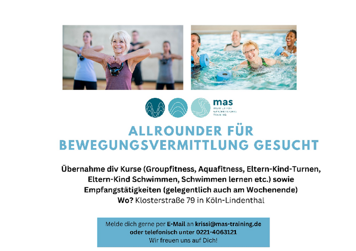 Übernahme div Kurse (Groupfitness, Aquafitness, Eltern-Kind-Turnen, Eltern-Kind Schwimmen, Schwimmen lernen etc.)