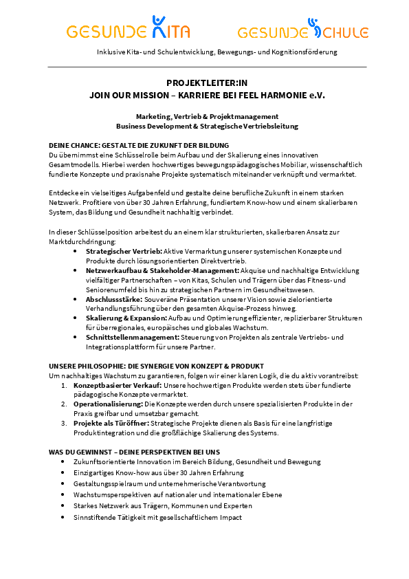 PROJEKTLEITER-STELLENAUSSCHREIBUNG FEEL HARMONIE e.V.