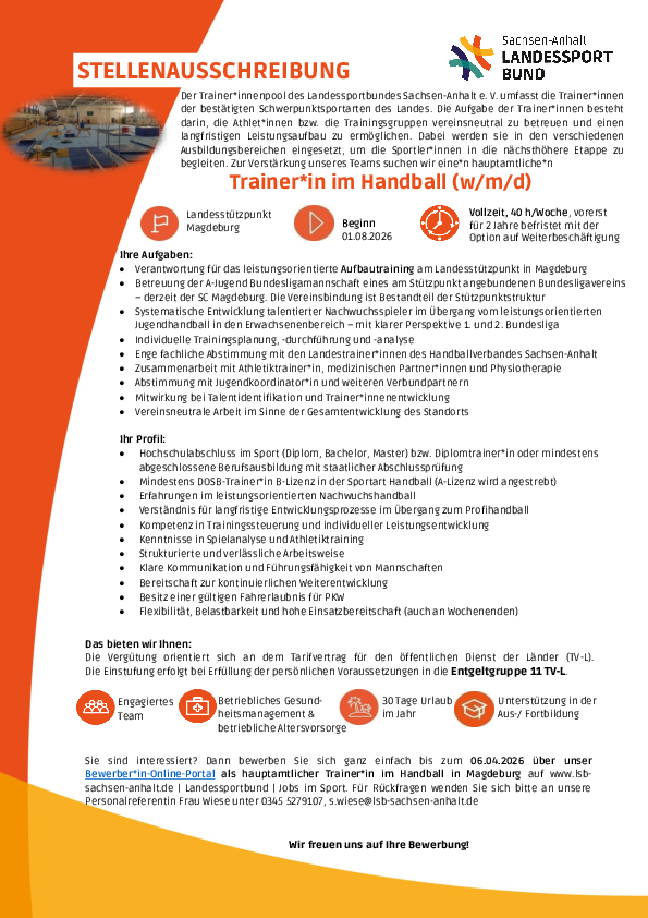 Weitere Jobangebote von Landessportbund Sachsen-Anhalt