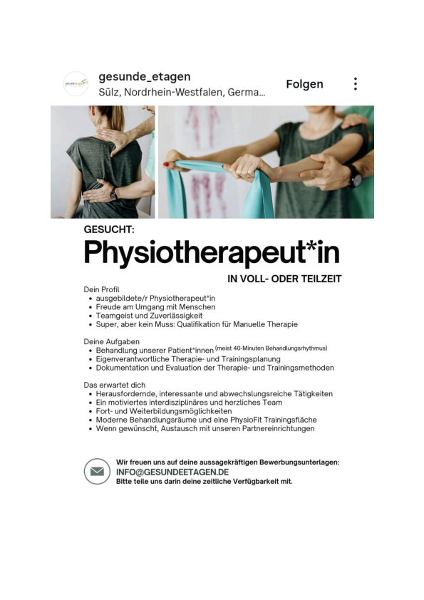 Physiotherapeut*in (m/w/d) in Voll- oder Teilzeit.