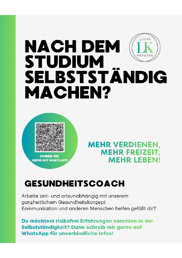 Schick uns einfach eine kurze Nachricht über WhatsApp – völlig unverbindlich. Scanne dafür entweder den QR-Code in der PDF-Datei oder schreibe die folgende Nummer an: +491739658939