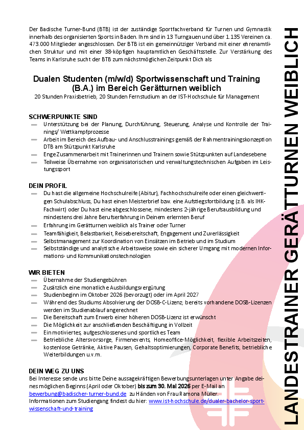 bewerbung@badischer-turner-bund.de zu Händen von Frau Ramona Müller.