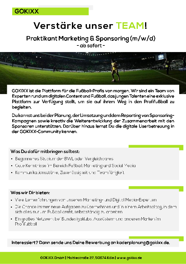 Interesse? Dann bewirb Dich unter kaderplanung@gokixx.de