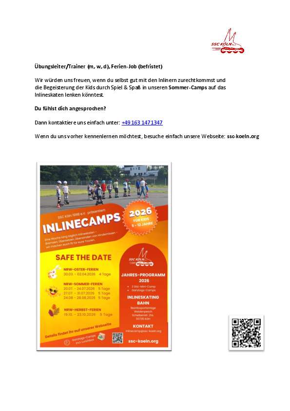 Ferienjob: Übungsleiter/Trainer im Rollsport in Köln gesucht!