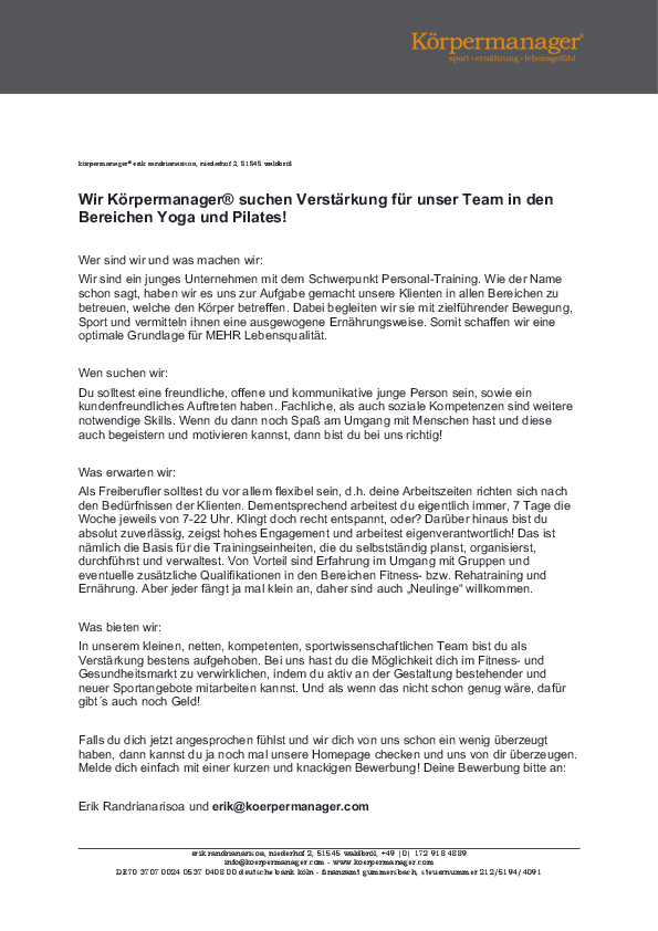 Wir Körpermanager® suchen Verstärkung für unser Team!