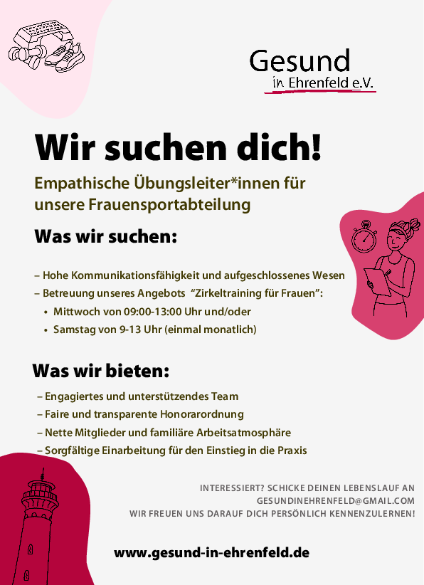 Trainerin in Ehrenfeld für Frauenfitnesstraining gesucht