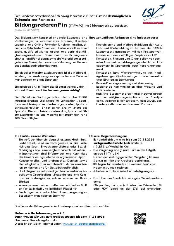 Dieses finden Sie im Internet unter: www.lsv-sh.de/stellenangebote/