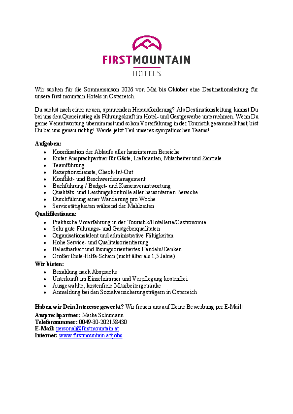 Internet: www.firstmountain.at/jobs