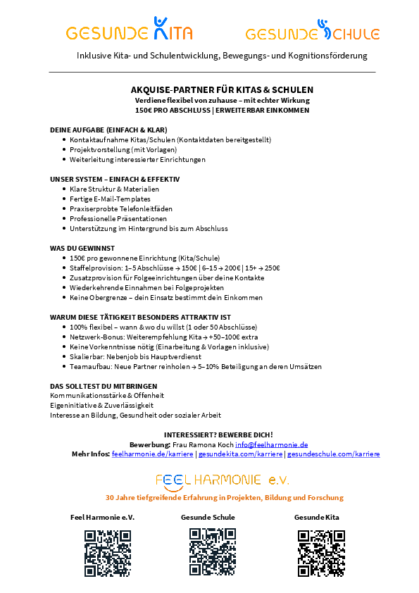 STELLENAUSSCHREIBUNG FEEL HARMONIE e.V.-AKQUISE