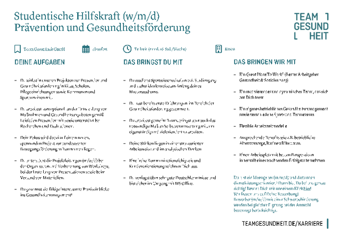 Studentische Hilfkraft (m/w/d) Prävention und Gesundheitsförderung