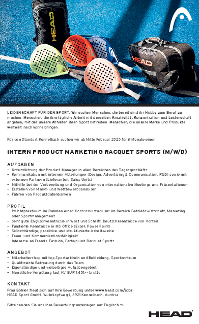 INTERN PRODUCT MARKETING RACQUET SPORTS (M/W/D)