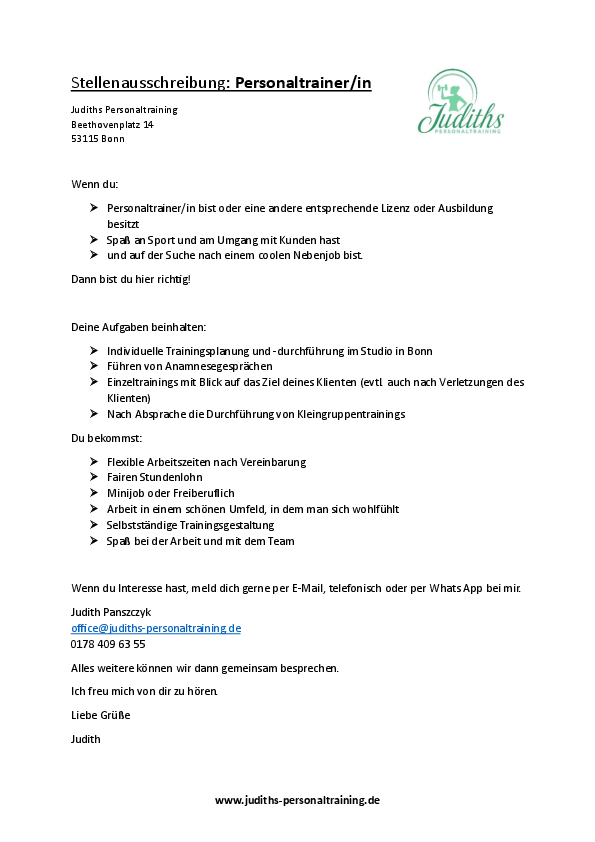 | Anbieter | Judiths Personaltraining |