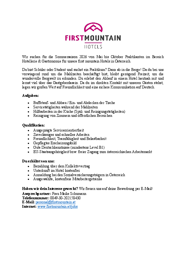 Internet: www.firstmountain.at/jobs