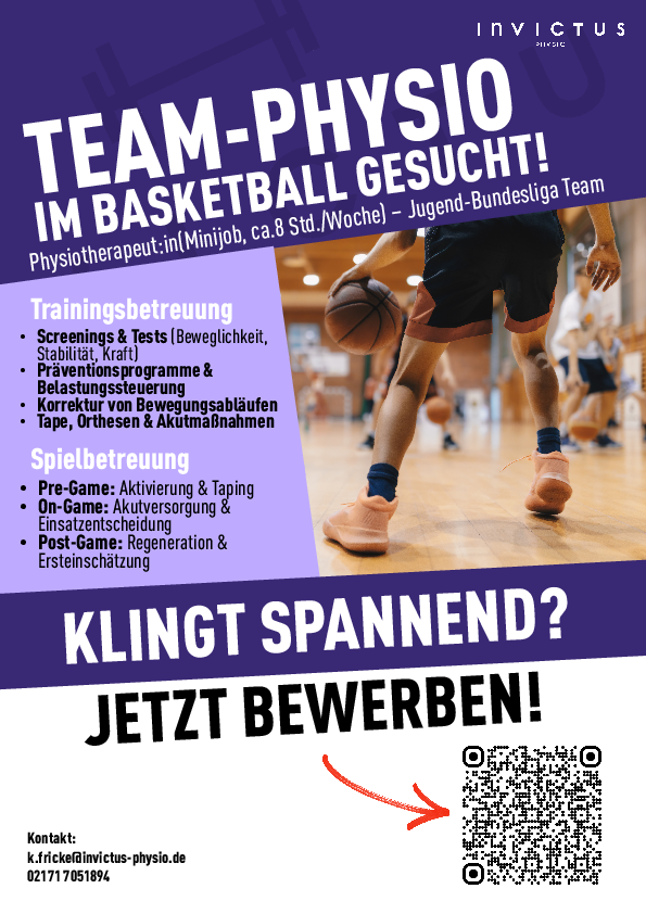 Physiotherapeut:in (Minijob) für Bundesliga Jugendmannschaft Basketball gesucht