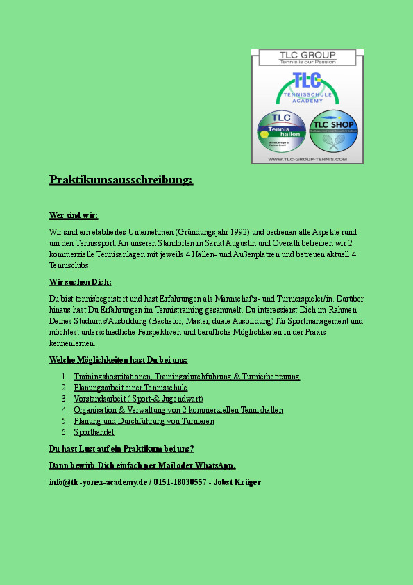 info@tlc-yonex-academy.de / +49 151 18030557 Jobst Krüger