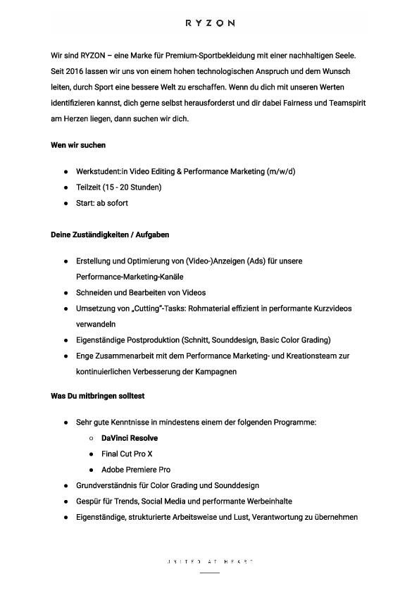 RYZON - Werkstudent:in Video Editing & Performance Marketing (m/w/d)