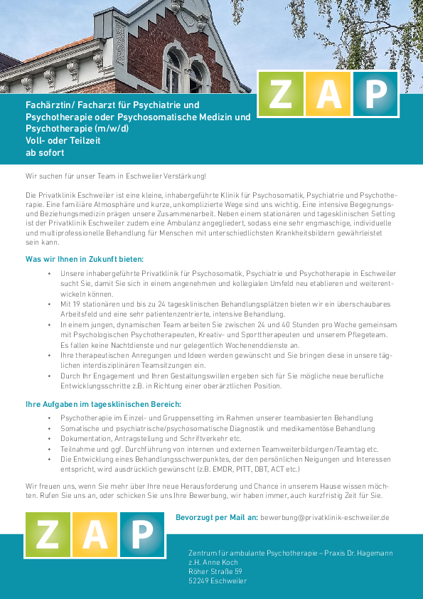 Bewerbung bevorzugt per Mail an: bewerbung@privatklinik-eschweiler.de