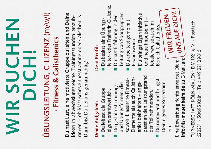 Übungsleitung, C-Lizenz (m/w/d) · Fitness & Calisthenics